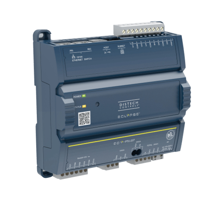 ECLYPSE Connected Terminal Unit (ECY-PTU) este conceput pentru a controla unitățile terminale, cum ar fi unitățile cu ventiloconvectoare, unități de răcire din plafoane și pompe de căldură. Acesta integrează un sistem de control, automatizare și server de automatizare și conectivitate, o sursă de alimentare și I/O-uri dedicate într-un singur pachet convenabil.